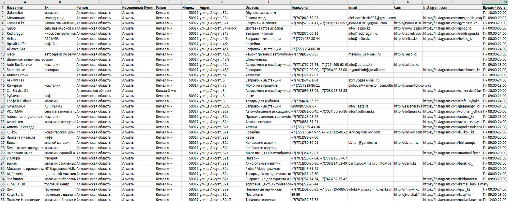 База данных хранится в формате Excel и содержит подробную информацию о каждой компании, включая название, адрес, сферу деятельности, телефоны, электронные адреса и веб-сайты. Вся информация представлена в отдельных столбцах, что позволяет легко фильтровать и сортировать данные по нужным параметрам. Например, вы можете получить полный список компаний в определенной отрасли, произведя фильтрацию по сфере деятельности всего за несколько секунд. Кроме того, наши файлы доступны для редактирования, позволяя вам добавлять дополнительные данные, такие как результаты переговоров, даты звонков и даты последующих контактов. Все программы и онлайн-сервисы для массовой рассылки электронных писем и СМС могут импортировать адреса электронной почты и мобильные телефоны из файлов Excel.